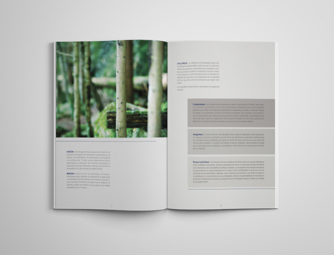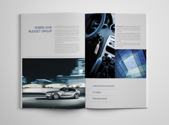 Layout designs for corporate dossiers of the different brands under Avis Budget Group.
